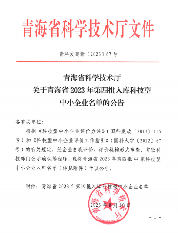 青海省2023年第4批入库科技型中小企业名单公告正文.jpg PICTURE