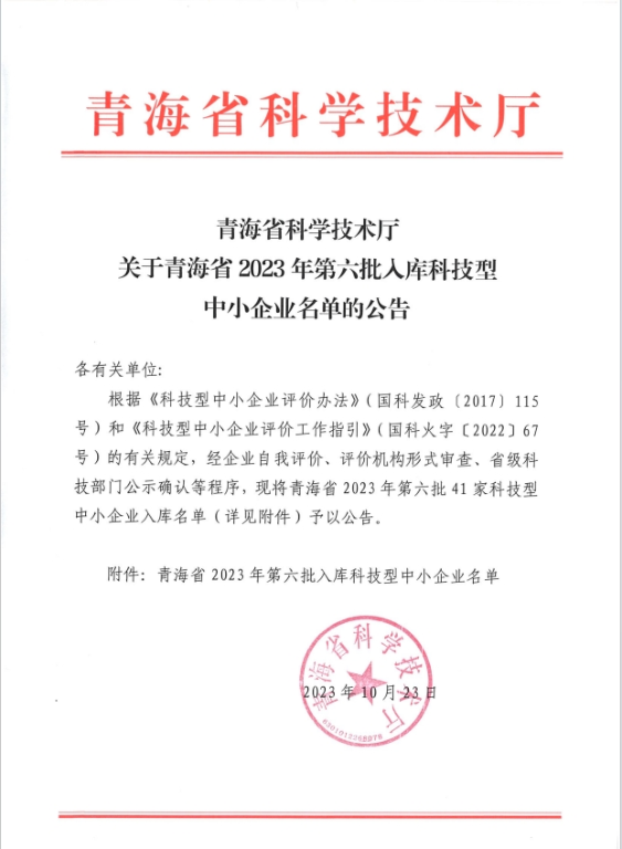 青海省2023年第6批入库科技型中小企业名单公告正文.jpg PICTURE