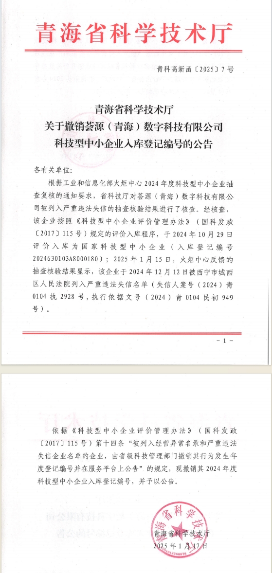 青海省2025年第1批撤销编号科技型中小企业名单.pdf FILE