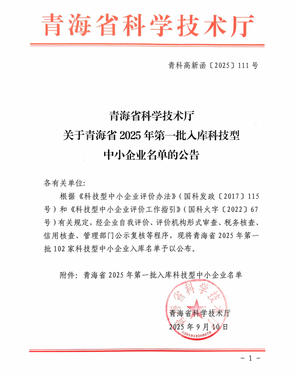 青海省2025年第1批入库科技型中小企业名单公告正文.jpg PICTURE