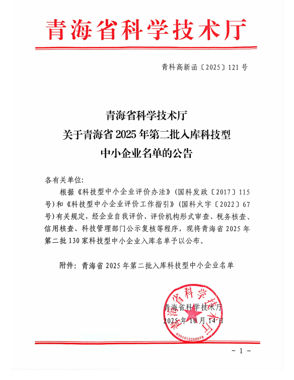 青海省2025年第2批入库科技型中小企业名单公告正文.jpg PICTURE