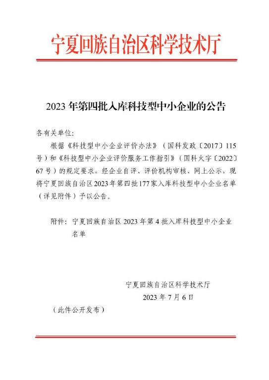 宁夏回族自治区2023年第4批入库科技型中小企业名单公告正文.jpg PICTURE