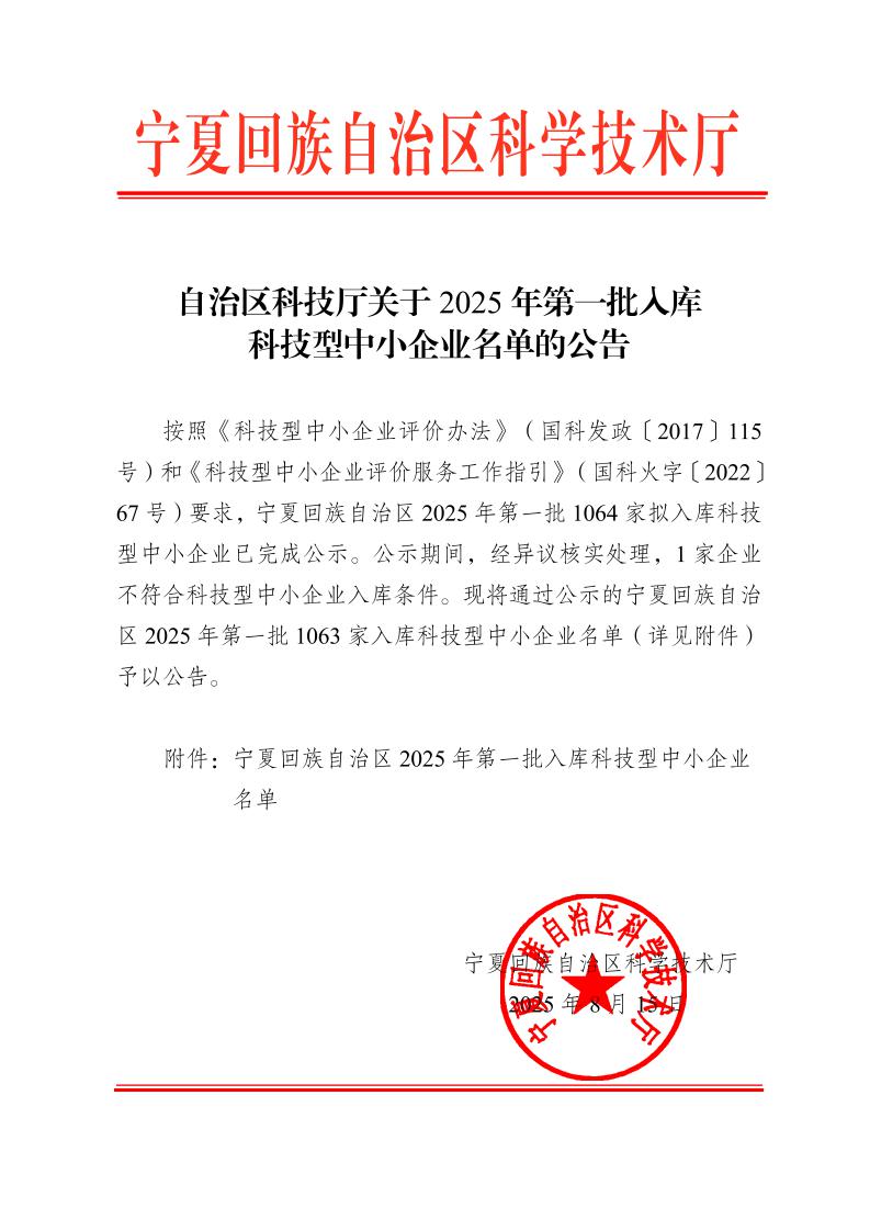宁夏回族自治区2025年第1批入库科技型中小企业名单公告正文.jpg PICTURE