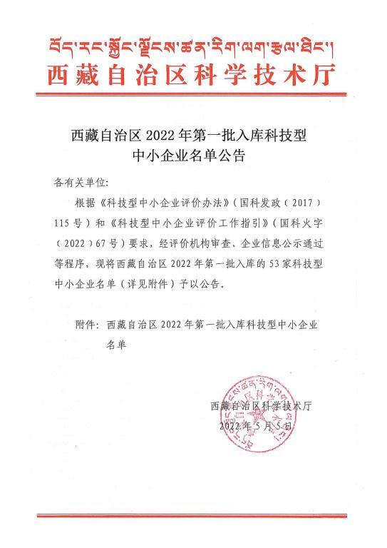 西藏自治区2022年第1批入库科技型中小企业名单公告正文.jpg PICTURE