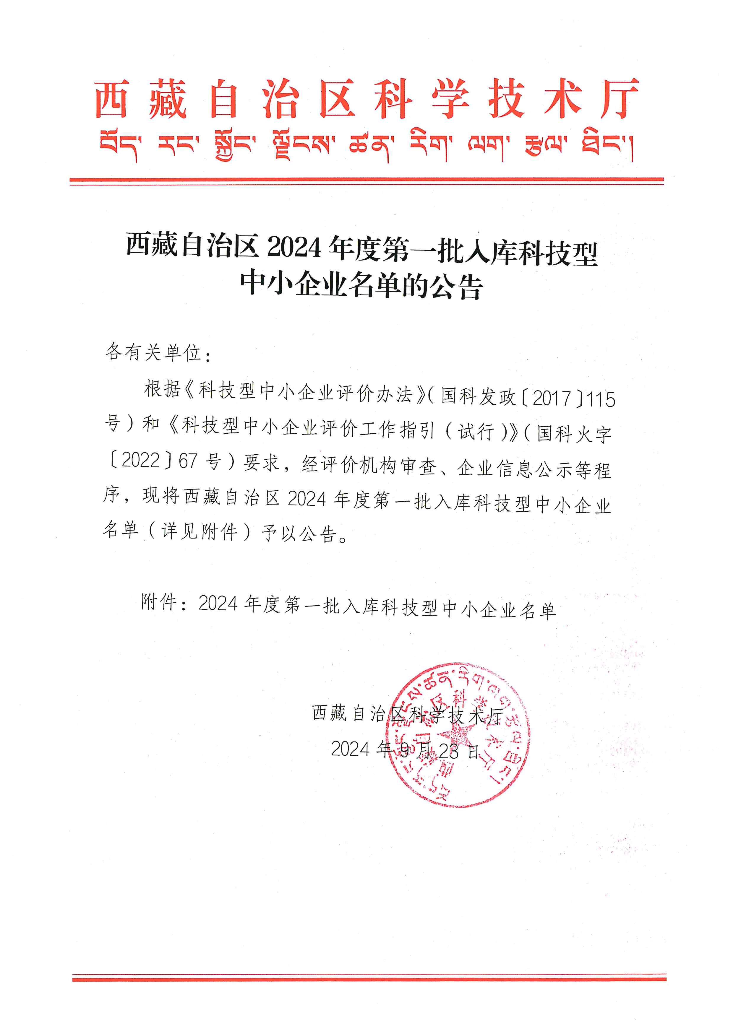 西藏自治区2024年第1批入库科技型中小企业名单公告正文.jpg PICTURE