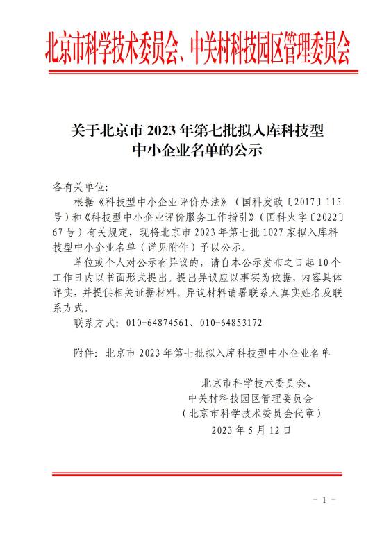 北京市2023年第7批拟入库科技型中小企业名单公示正文.jpg PICTURE