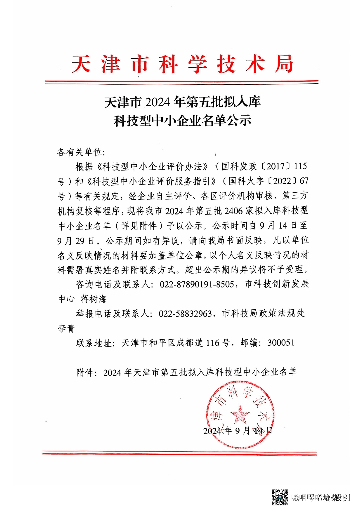 天津市2024年第5批拟入库科技型中小企业名单公示正文.jpg PICTURE
