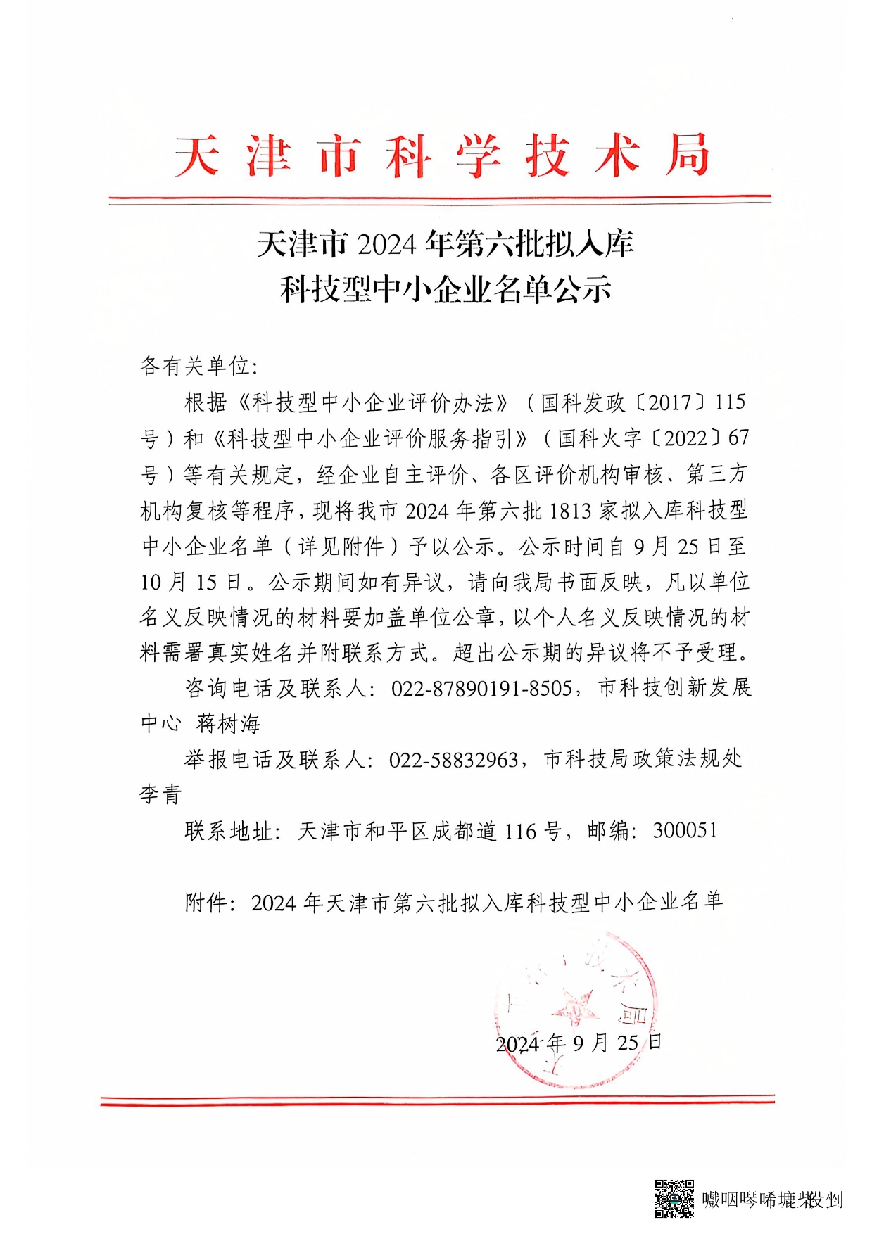 天津市2024年第6批拟入库科技型中小企业名单公示正文.jpg PICTURE