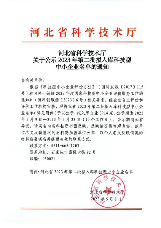 河北省2023年第2批拟入库科技型中小企业名单公示正文.jpg PICTURE