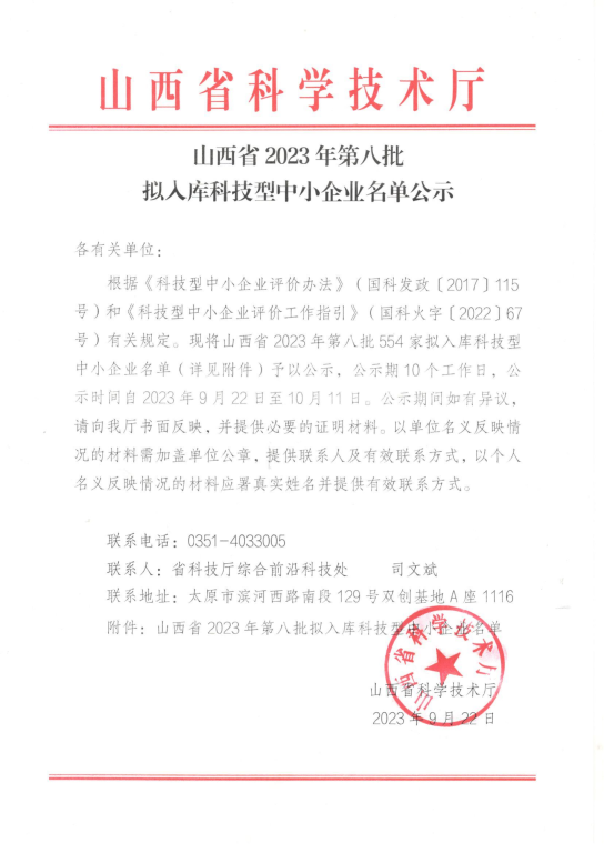 山西省2023年第8批拟入库科技型中小企业名单公示正文.jpg PICTURE