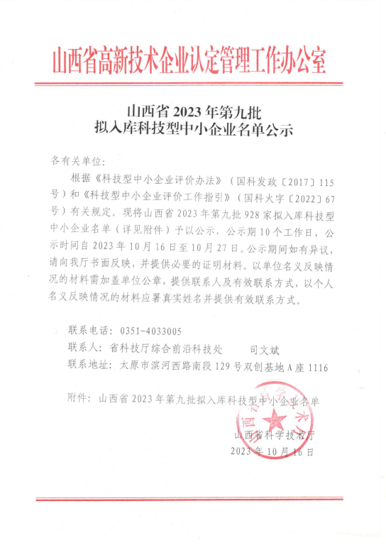 山西省2023年第9批拟入库科技型中小企业名单公示正文.jpg PICTURE