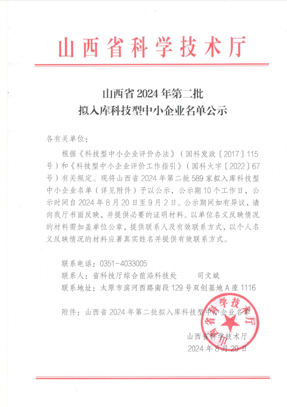山西省2024年第2批拟入库科技型中小企业名单公示正文.jpg PICTURE