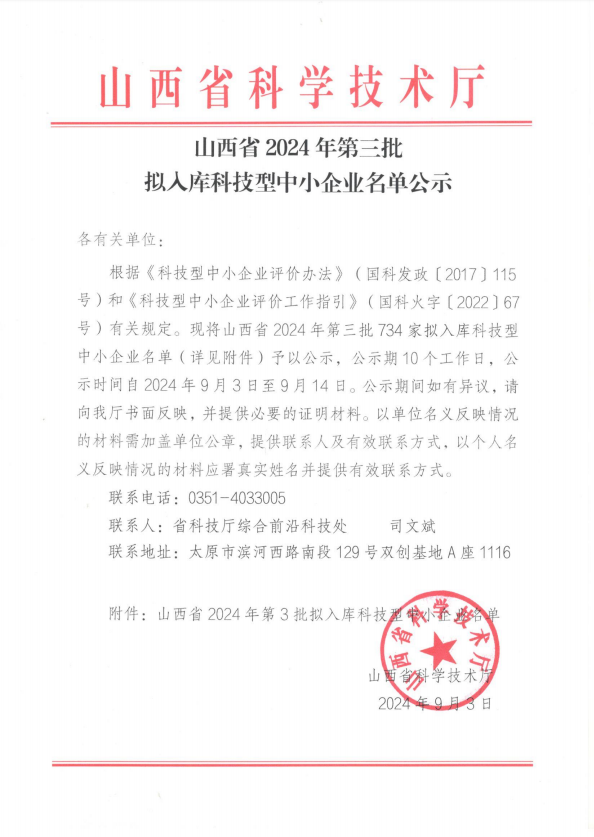 山西省2024年第3批拟入库科技型中小企业名单公示正文.jpg PICTURE