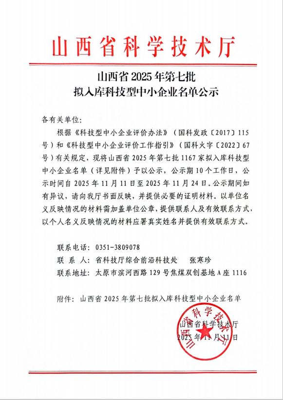山西省2025年第7批拟入库科技型中小企业名单公示正文.jpg PICTURE