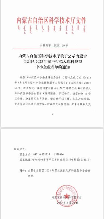 内蒙古自治区2023年第3批拟入库科技型中小企业名单公示正文.jpg PICTURE
