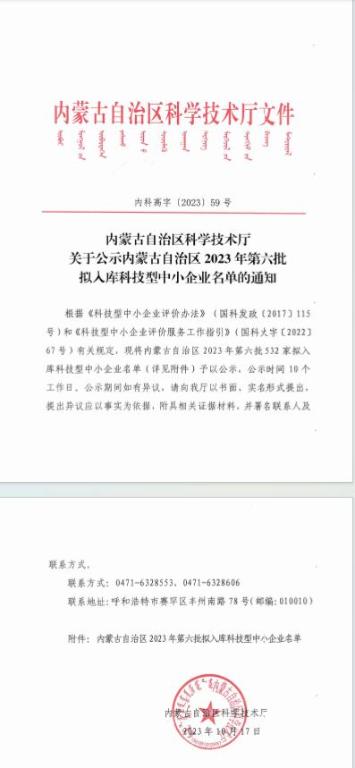 内蒙古自治区2023年第6批拟入库科技型中小企业名单公示正文.jpg PICTURE