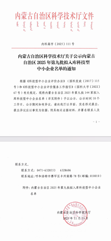 内蒙古自治区2025年第9批拟入库科技型中小企业名单公示正文.jpg PICTURE