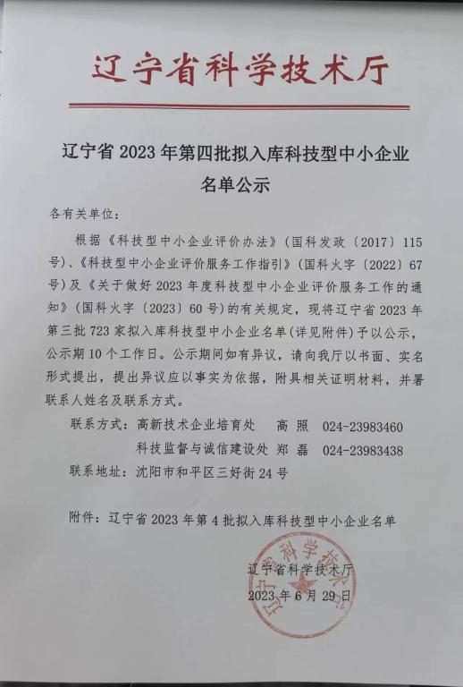 辽宁省2023年第4批拟入库科技型中小企业名单公示正文.jpg PICTURE