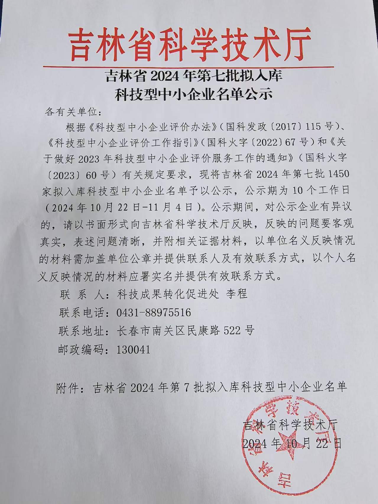 吉林省2024年第7批拟入库科技型中小企业名单公示正文.jpg PICTURE
