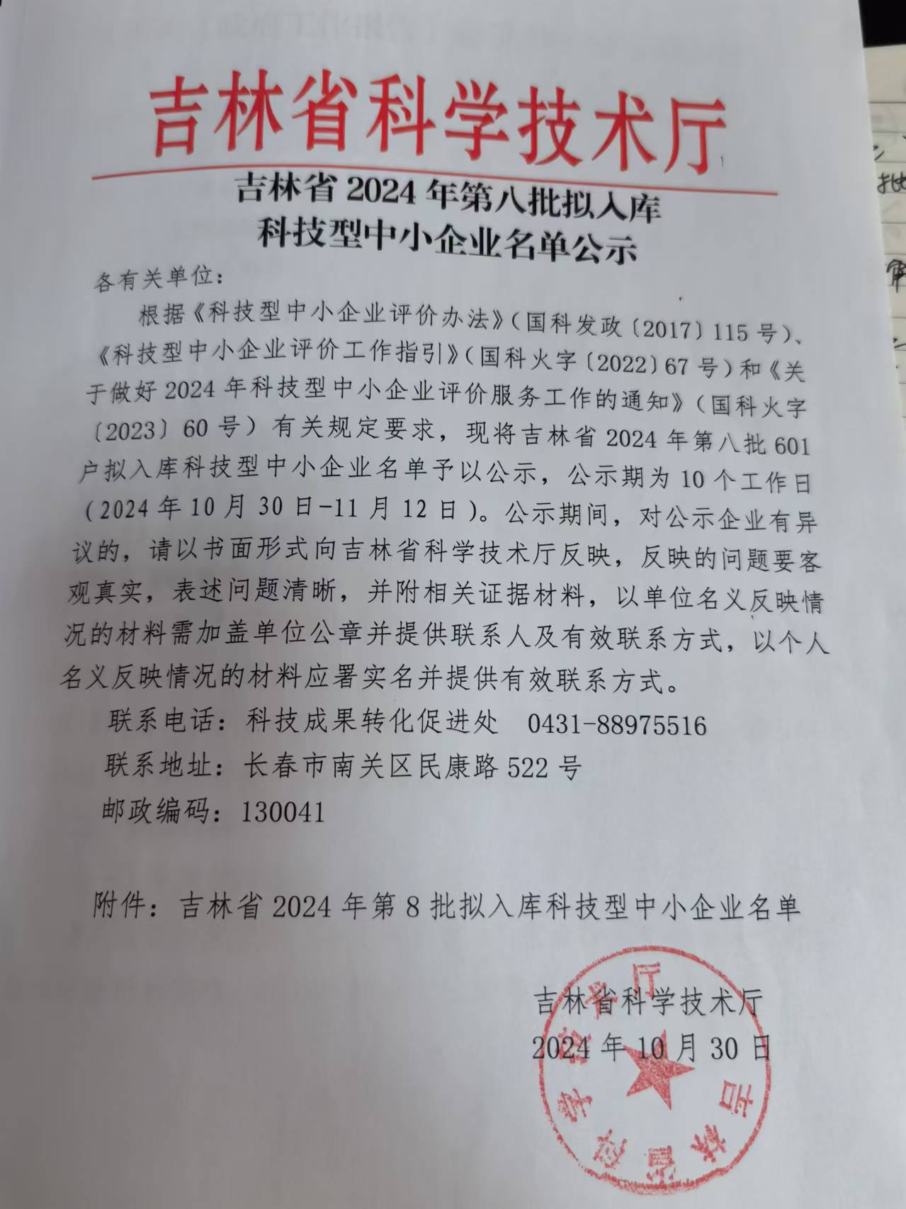 吉林省2024年第8批拟入库科技型中小企业名单公示正文.jpg PICTURE