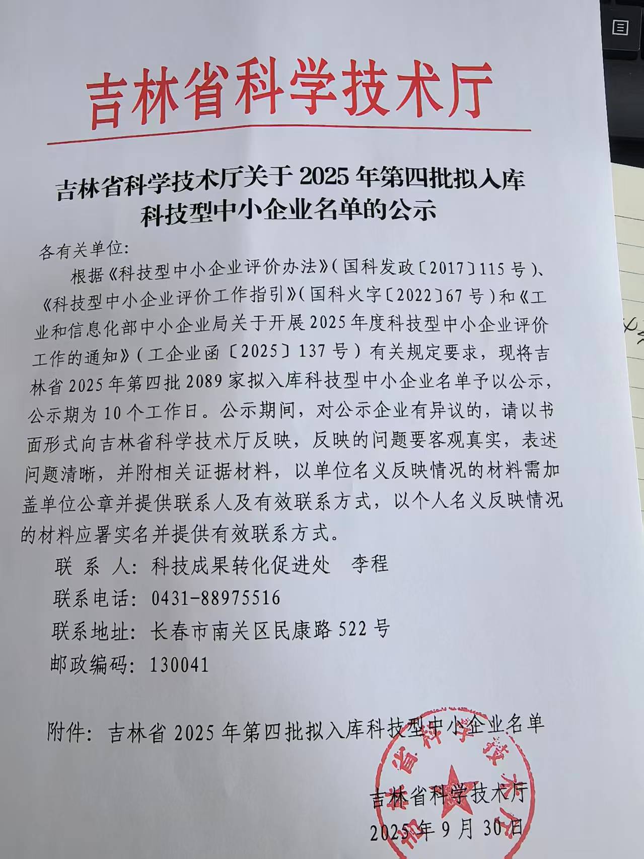 吉林省2025年第4批拟入库科技型中小企业名单公示正文.jpg PICTURE