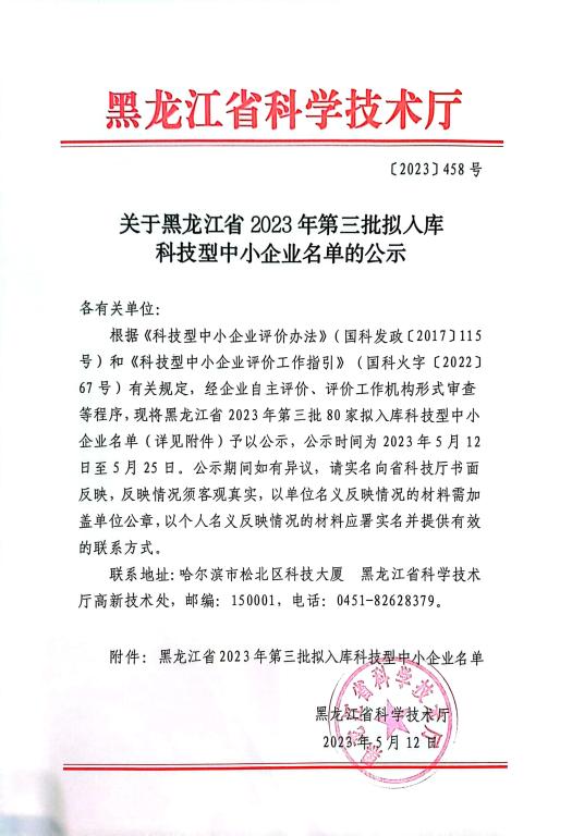 黑龙江省2023年第3批拟入库科技型中小企业名单公示正文.jpg PICTURE