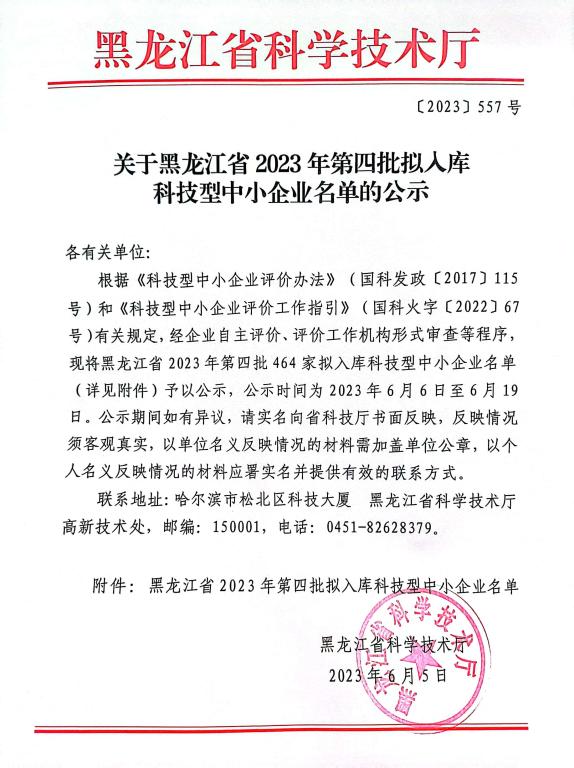 黑龙江省2023年第4批拟入库科技型中小企业名单公示正文.jpg PICTURE