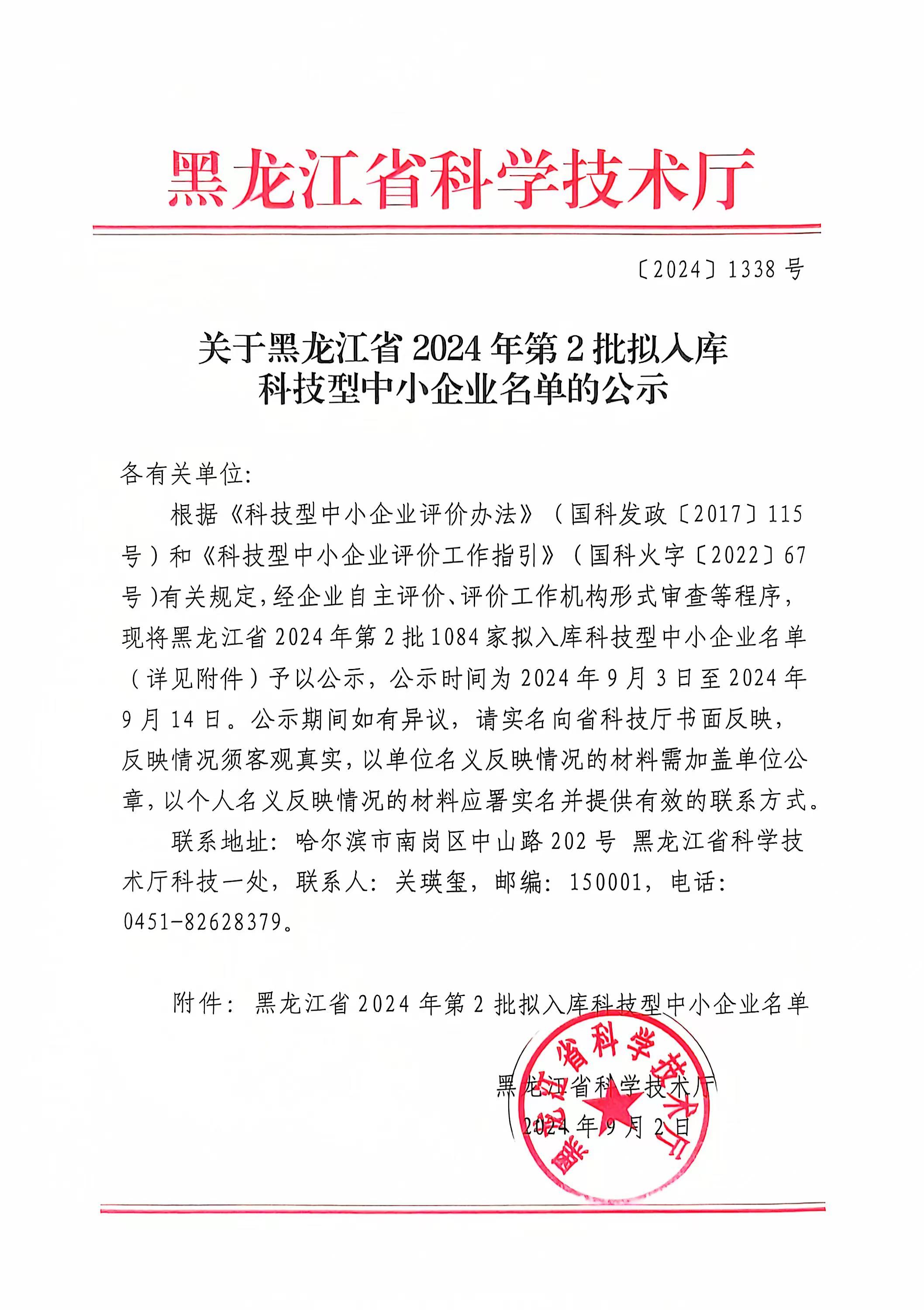 黑龙江省2024年第2批拟入库科技型中小企业名单公示正文.jpg PICTURE