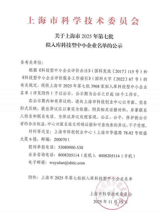 上海市2025年第7批拟入库科技型中小企业名单公示正文.jpg PICTURE