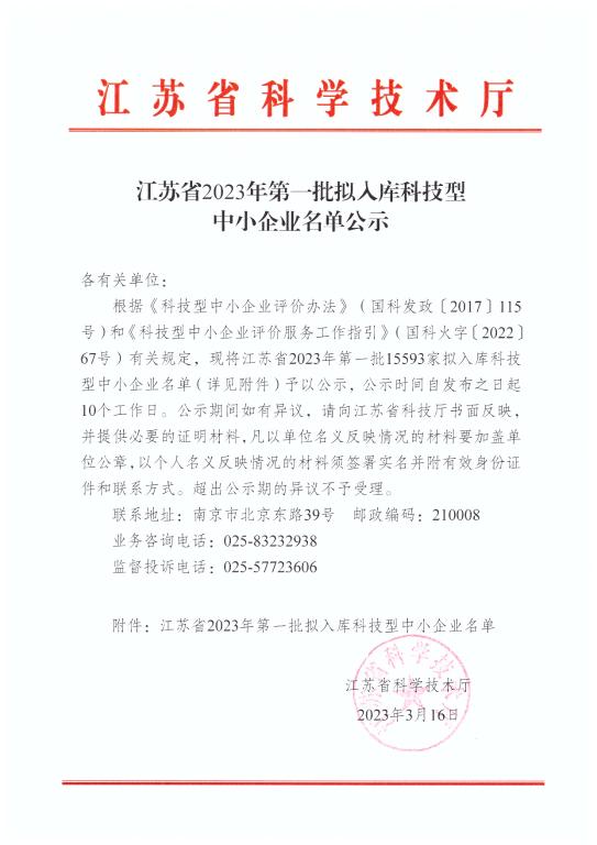 江苏省2023年第1批拟入库科技型中小企业名单公示正文.jpg PICTURE