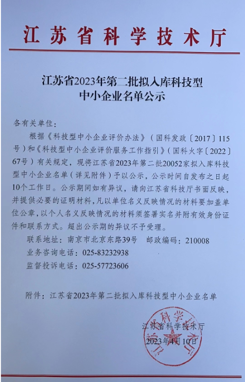 附件:江苏省2023年第二批拟入库科技型中小企业名单.pdf FILE