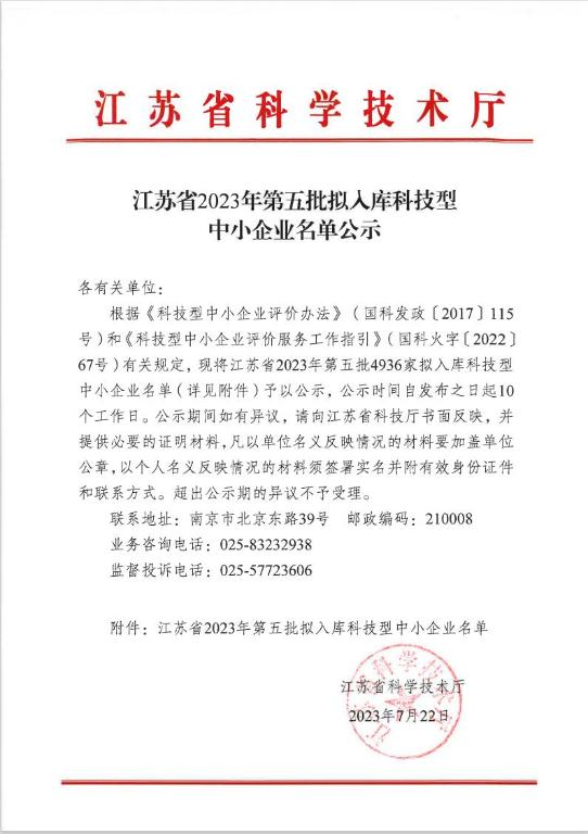 江苏省2023年第5批拟入库科技型中小企业名单公示正文.jpg PICTURE
