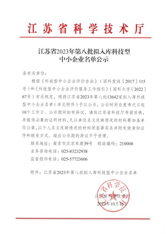 江苏省2023年第8批拟入库科技型中小企业名单公示正文.jpg PICTURE