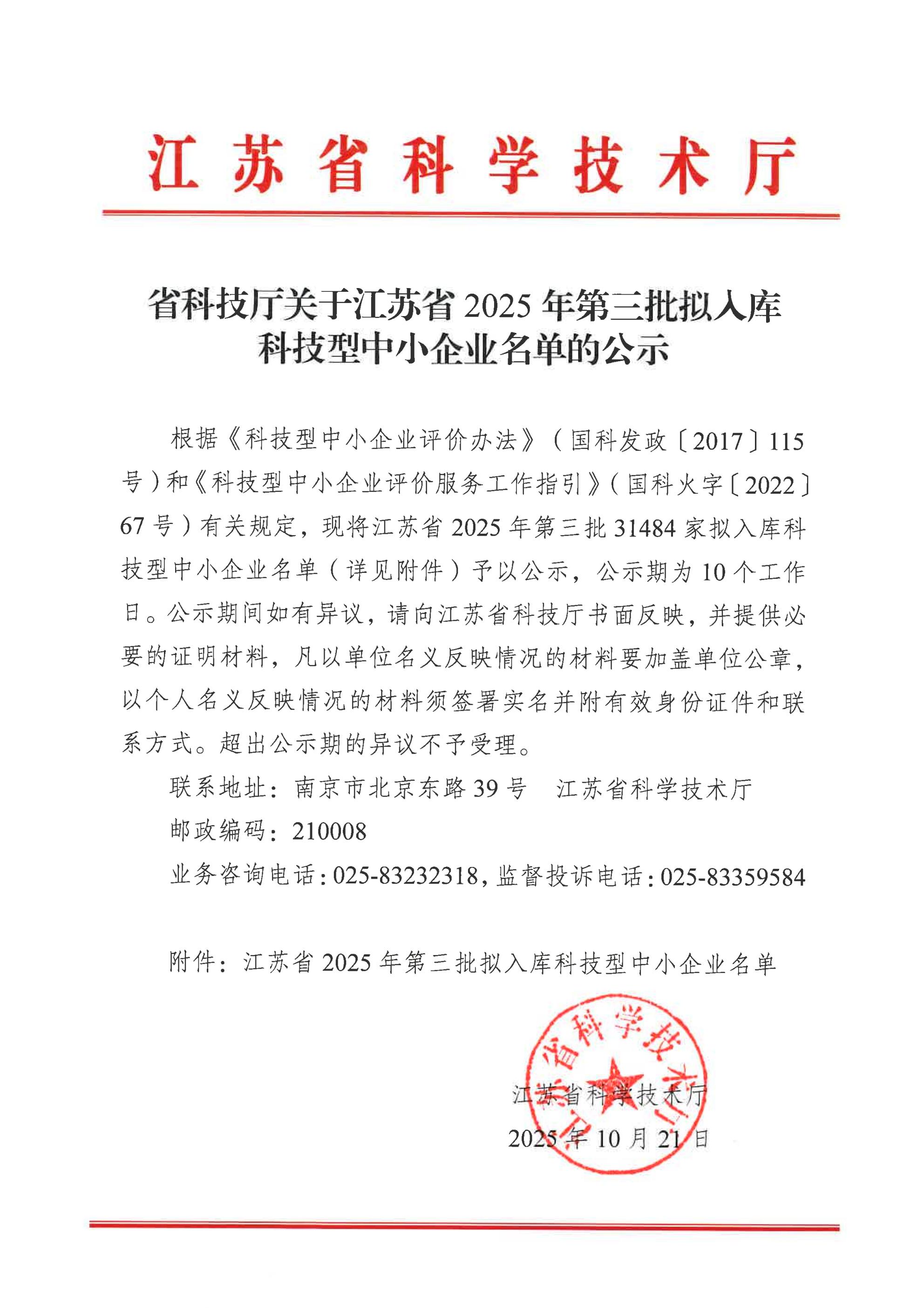 江苏省2025年第3批拟入库科技型中小企业名单公示正文.jpg PICTURE