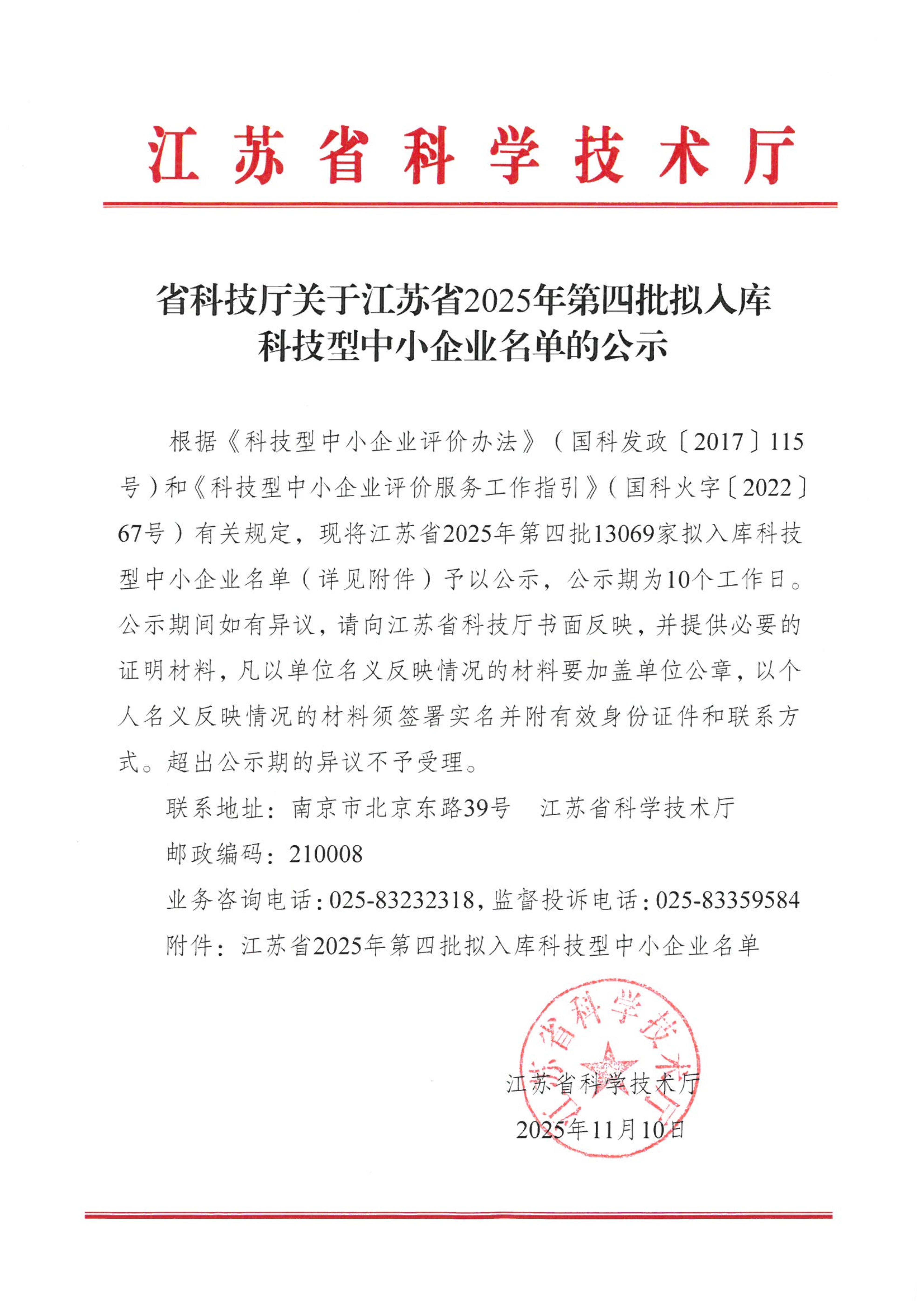 江苏省2025年第4批拟入库科技型中小企业名单公示正文.jpg PICTURE