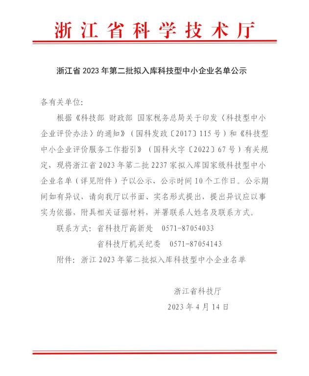 浙江省2023年第2批拟入库科技型中小企业名单公示正文.jpg PICTURE