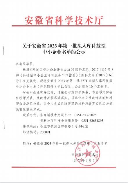 安徽省2023年第1批拟入库科技型中小企业名单公示正文.jpg PICTURE