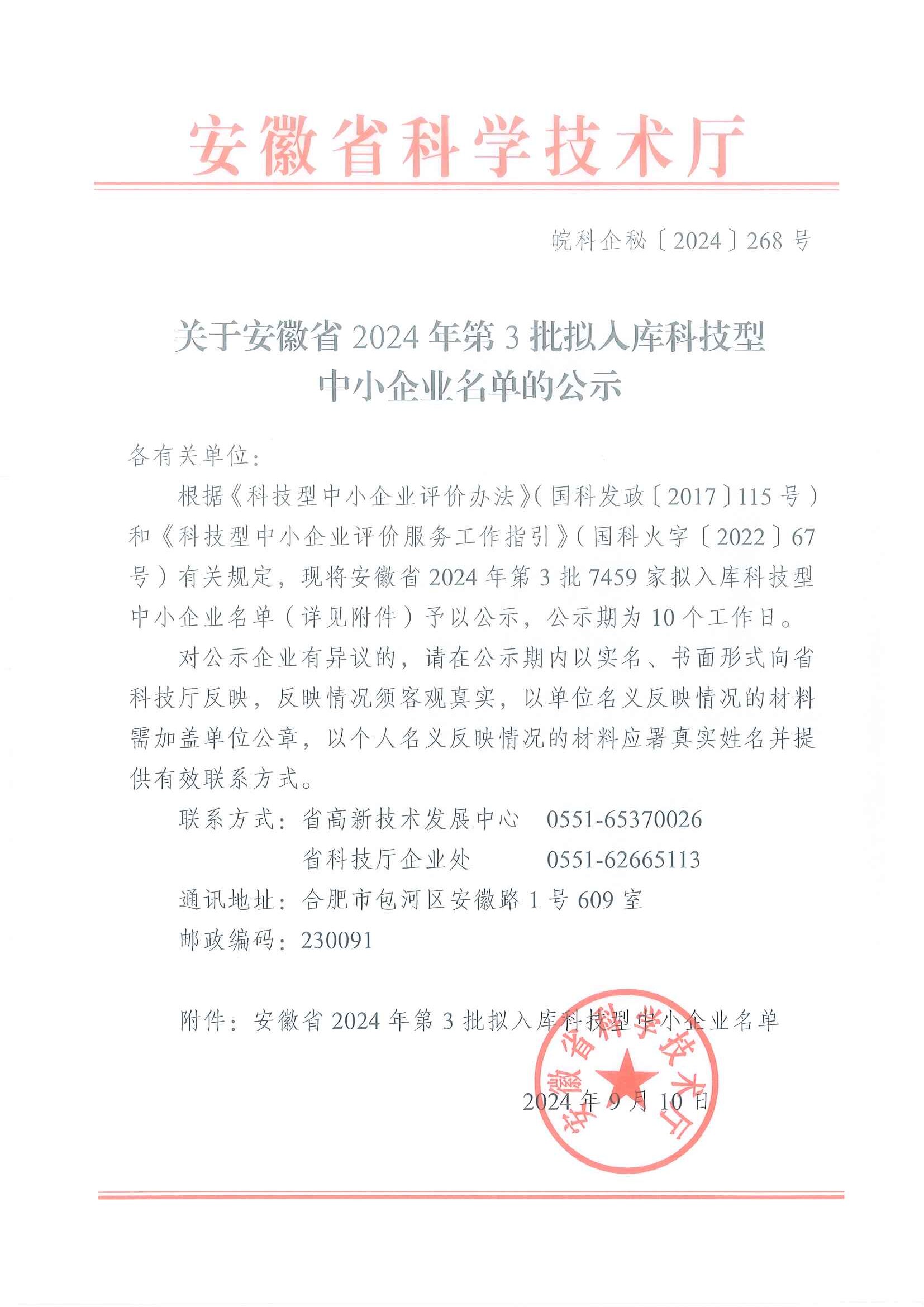 安徽省2024年第3批拟入库科技型中小企业名单公示正文.jpg PICTURE