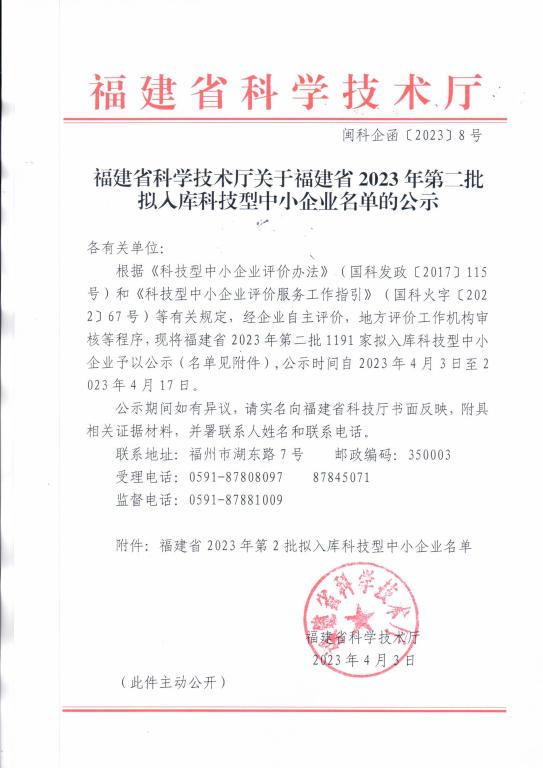 福建省2023年第2批拟入库科技型中小企业名单公示正文.jpg PICTURE