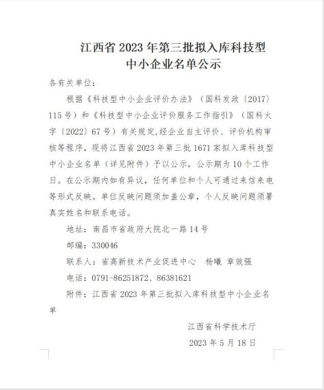 江西省2023年第3批拟入库科技型中小企业名单公示正文.jpg PICTURE