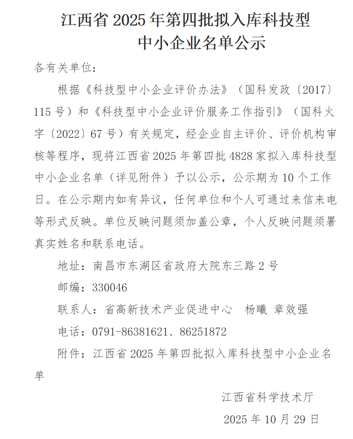 江西省2025年第4批拟入库科技型中小企业名单公示正文.jpg PICTURE