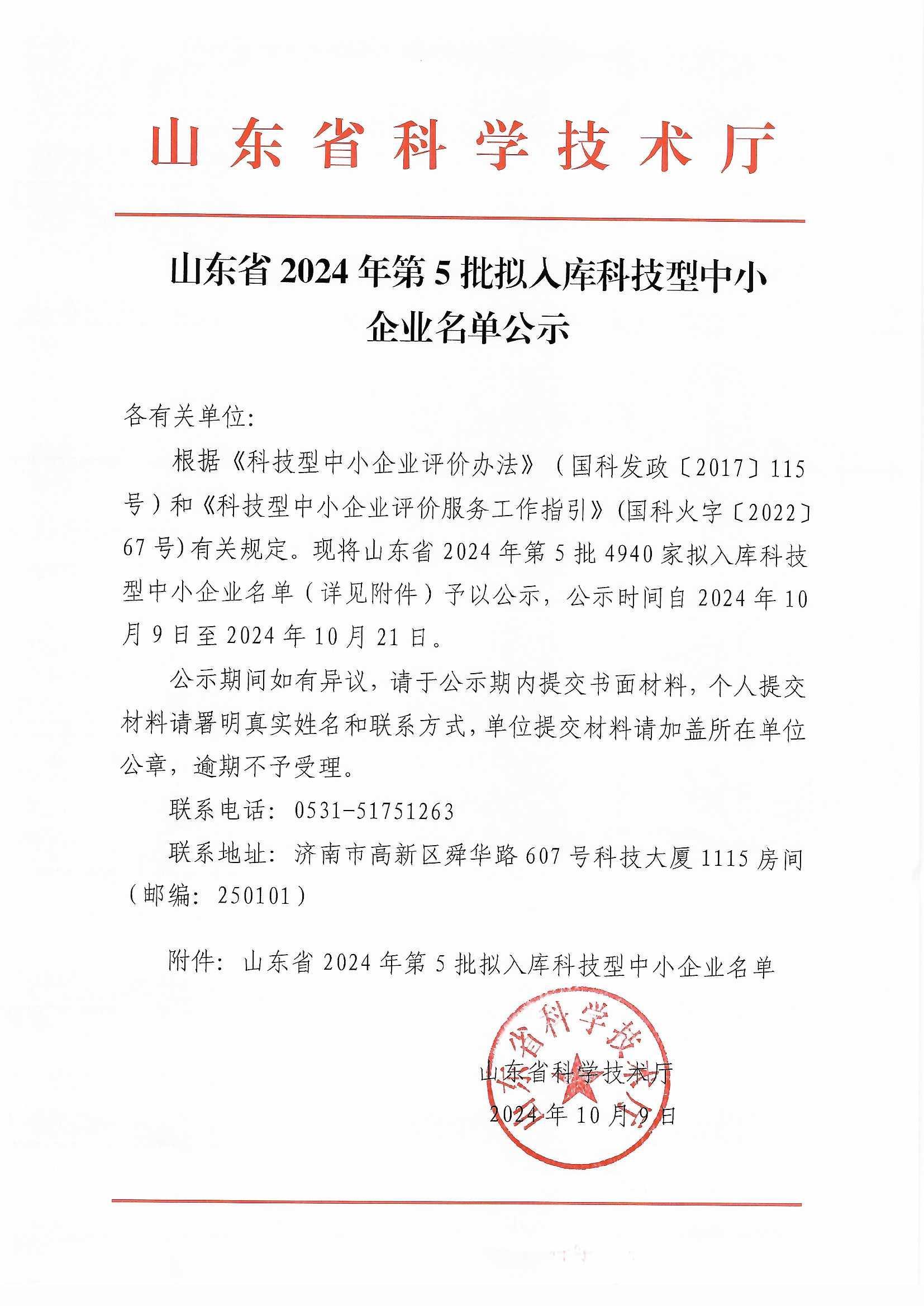 山东省2024年第5批拟入库科技型中小企业名单公示正文.jpg PICTURE
