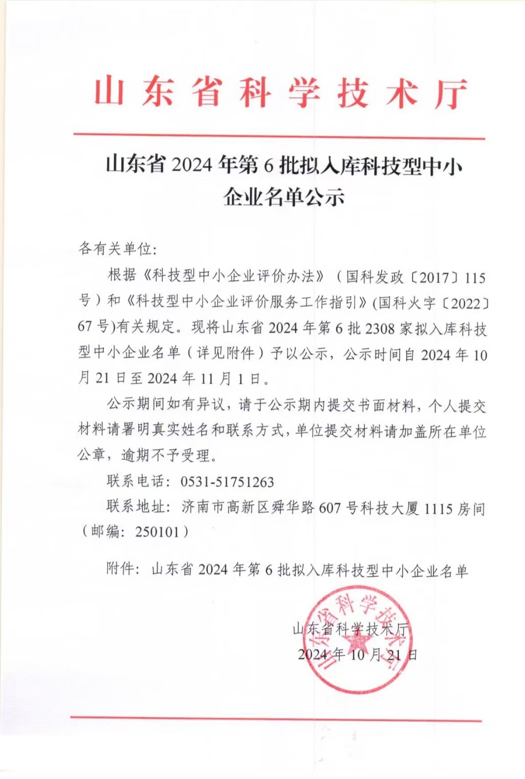 山东省2024年第6批拟入库科技型中小企业名单公示正文.jpg PICTURE