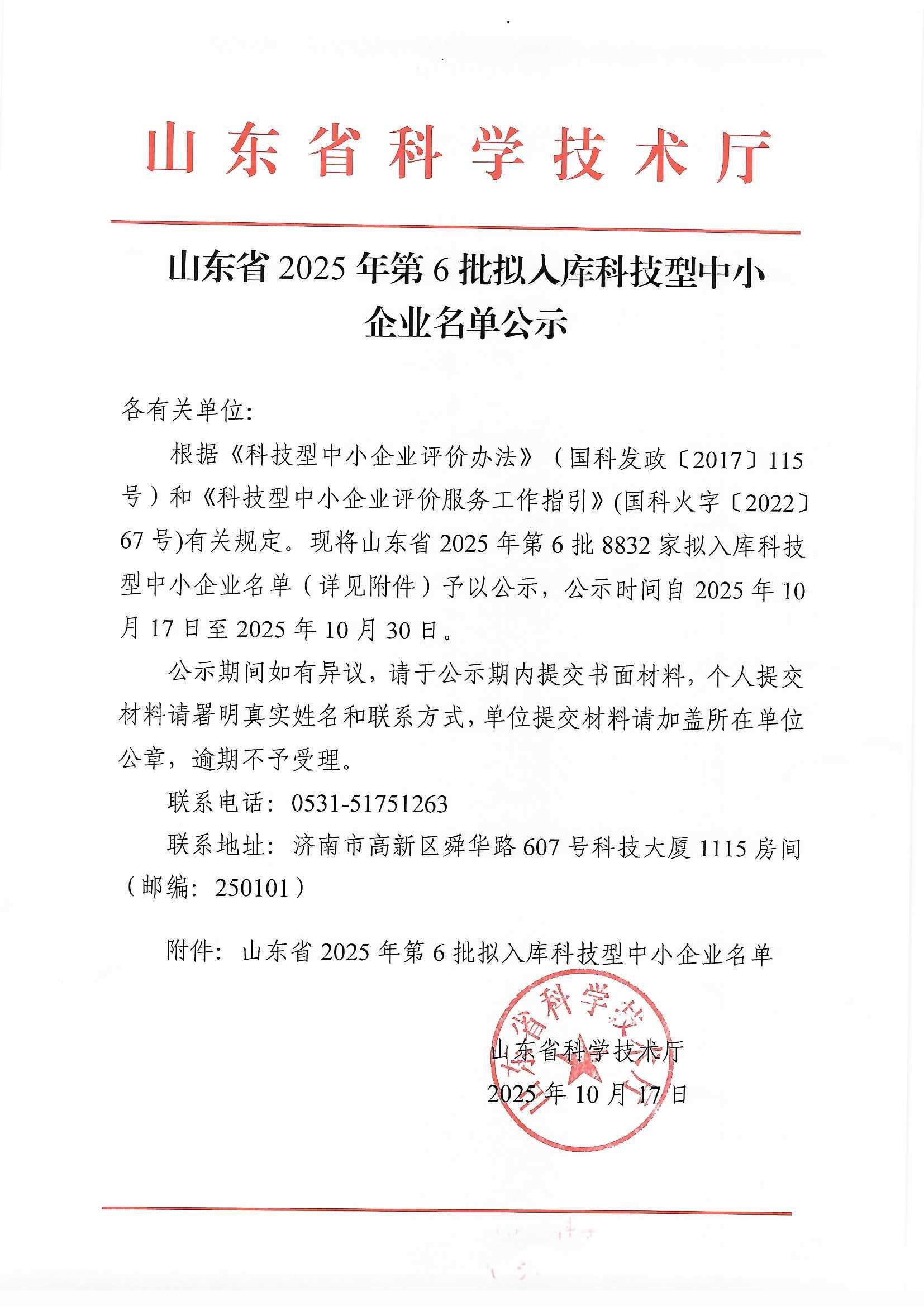 山东省2025年第6批拟入库科技型中小企业名单公示正文.jpg PICTURE