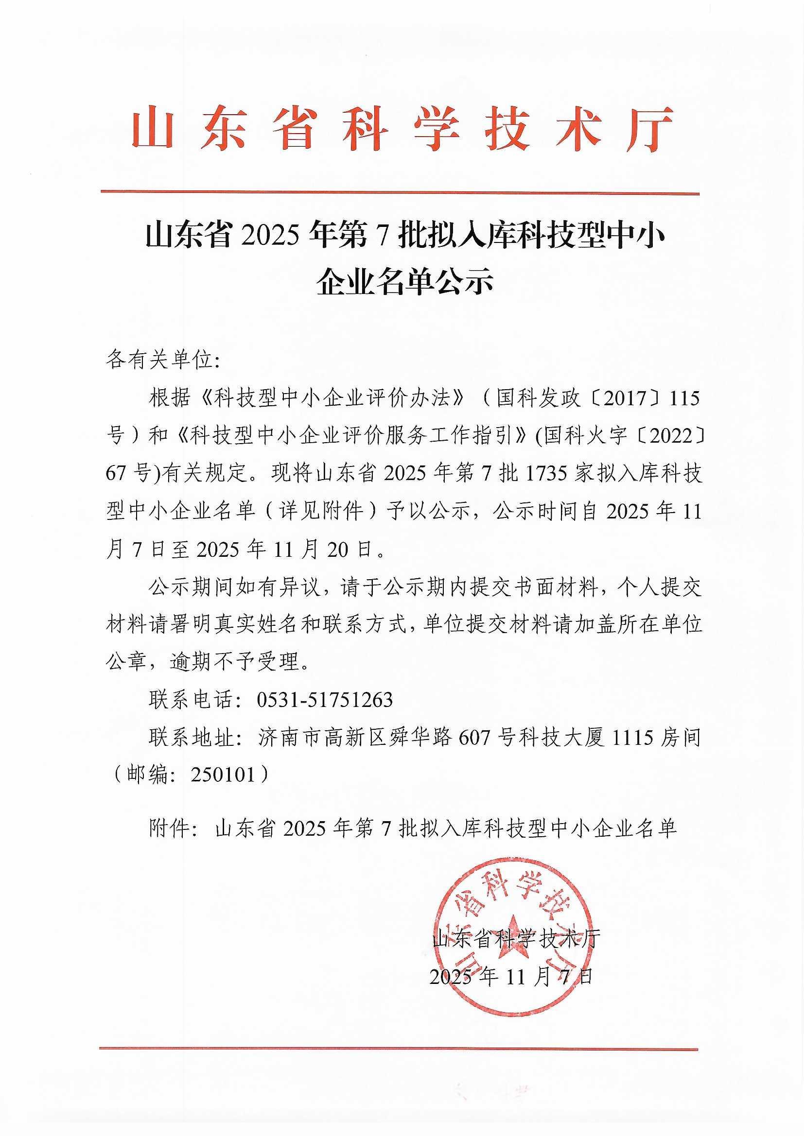 山东省2025年第7批拟入库科技型中小企业名单公示正文.jpg PICTURE