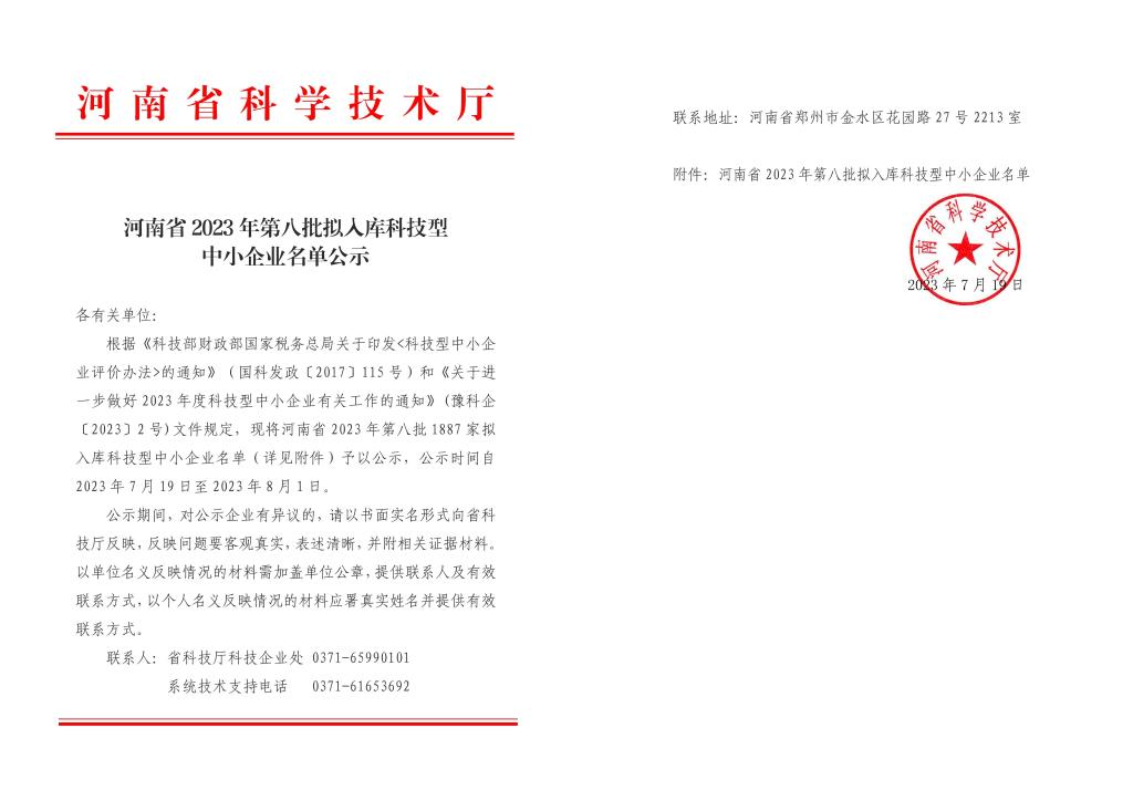河南省2023年第8批拟入库科技型中小企业名单公示正文.jpg PICTURE
