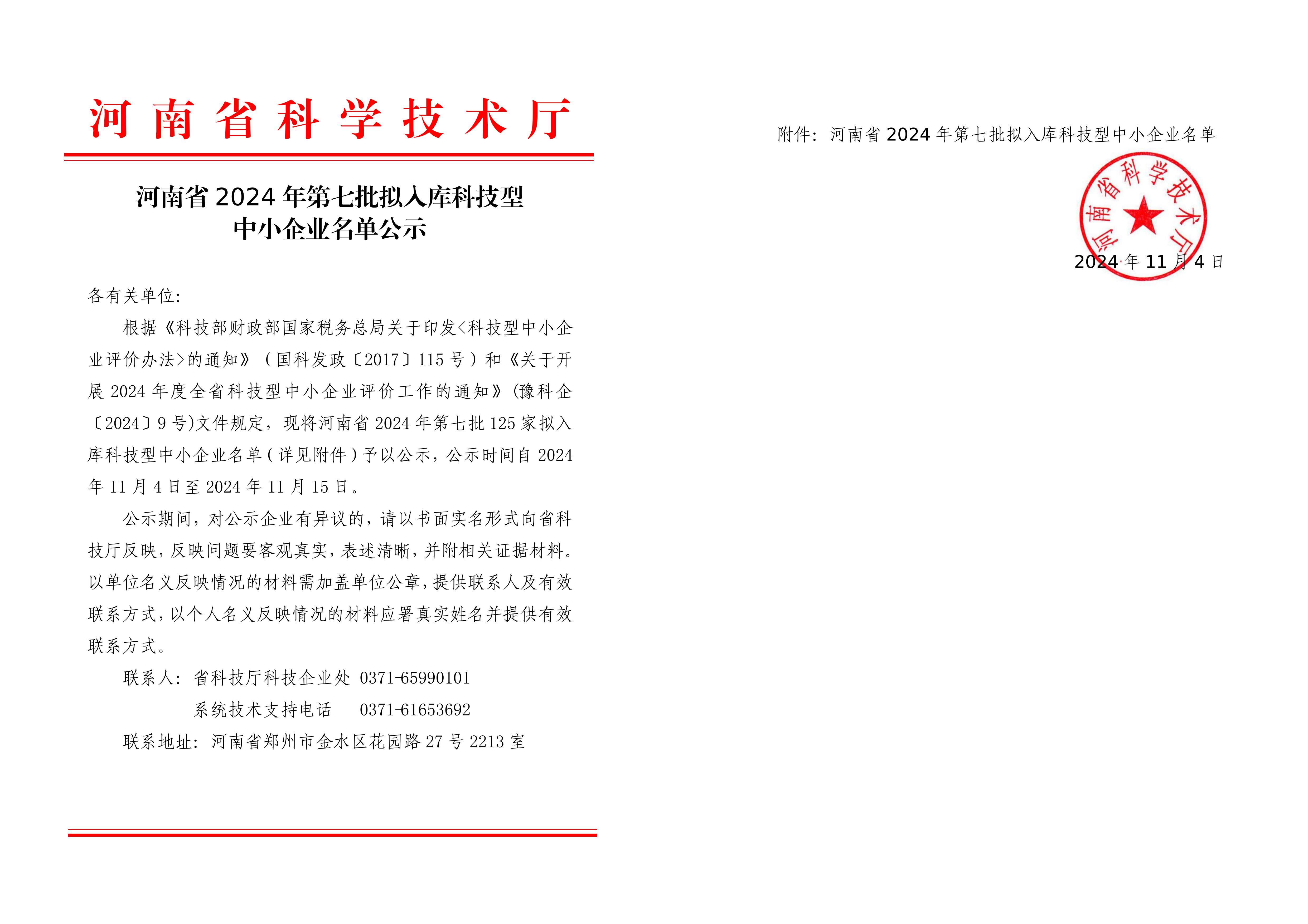 河南省2024年第7批拟入库科技型中小企业名单公示正文.jpg PICTURE