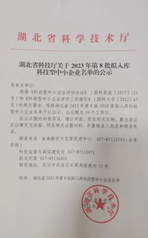 湖北省2023年第8批拟入库科技型中小企业名单公示正文.jpg PICTURE