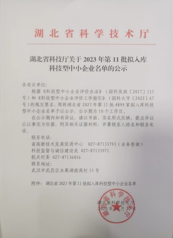 湖北省2023年第11批拟入库科技型中小企业名单公示正文.jpg PICTURE