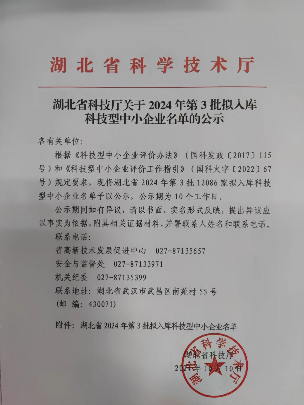 湖北省2024年第3批拟入库科技型中小企业名单公示正文.jpg PICTURE